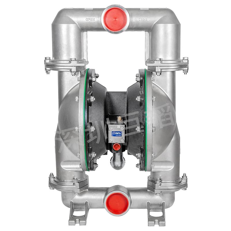 將泵安裝在平整臺(tái)面上,底腳固定,接上物料進(jìn)出管道(物料進(jìn)出口處的建議:安裝30-50CM長(zhǎng)彈性軟管(或撓性接頭)以保護(hù)泵,降低、減少震動(dòng),避免螺栓松動(dòng),造成滲漏),緊固隔膜泵上所有螺絲(防止運(yùn)輸搬動(dòng)途中造成螺栓松動(dòng)),接上氣源即可。